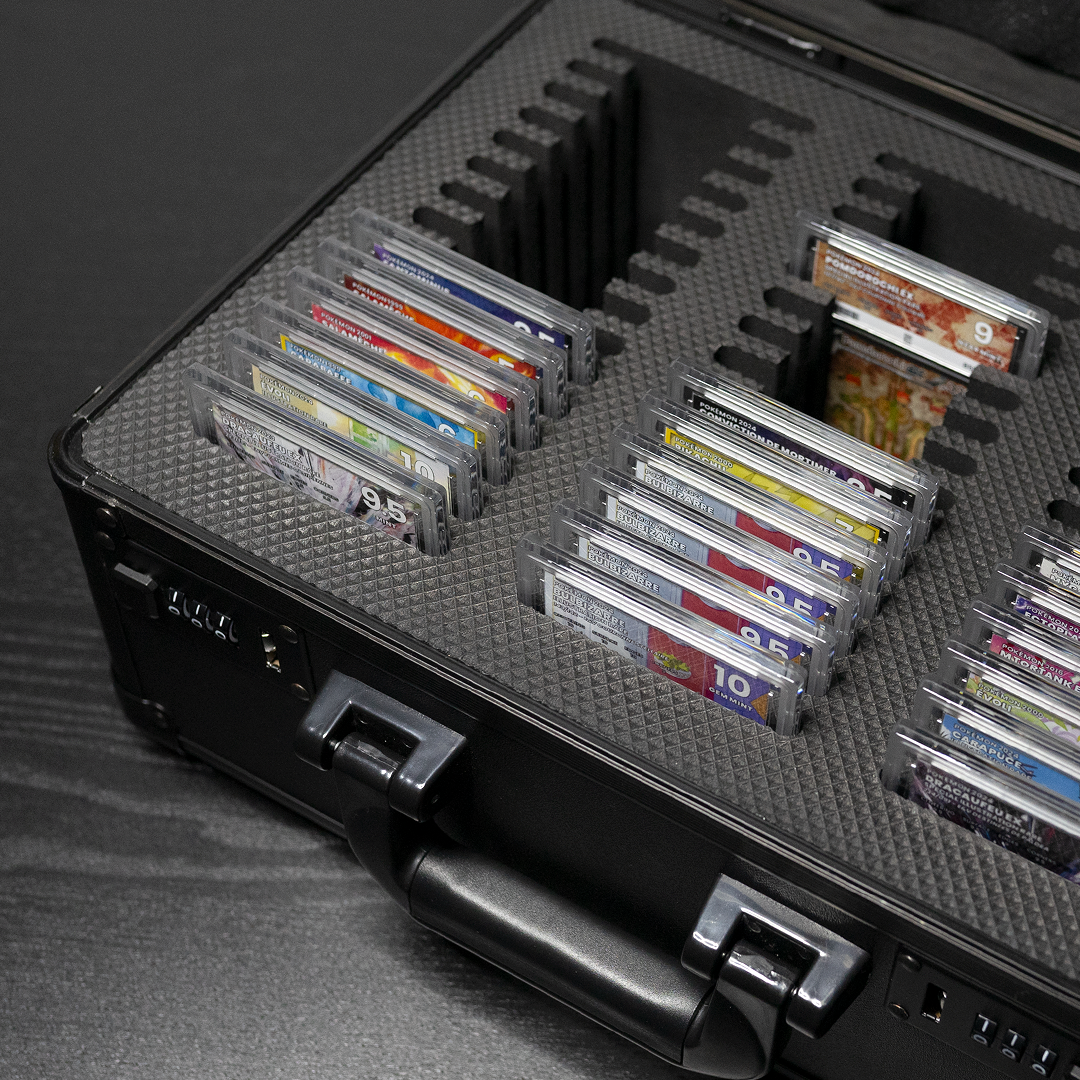 Nos mallettes permettent de ranger 45 cartes gradées de la plupart des entreprises hormis Beckett.