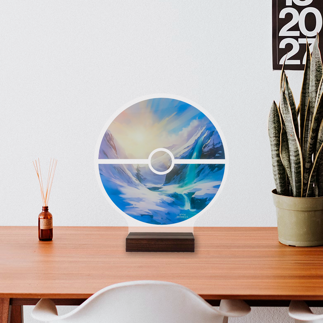La version "Glace Éternelle", comme son nom l'indique, représente un paysage gelé qui ira parfaitement avec vos cartes Pokémon de type eau et qui se trouvent dans un environnement glacé comme Suicune de EB12.5 !