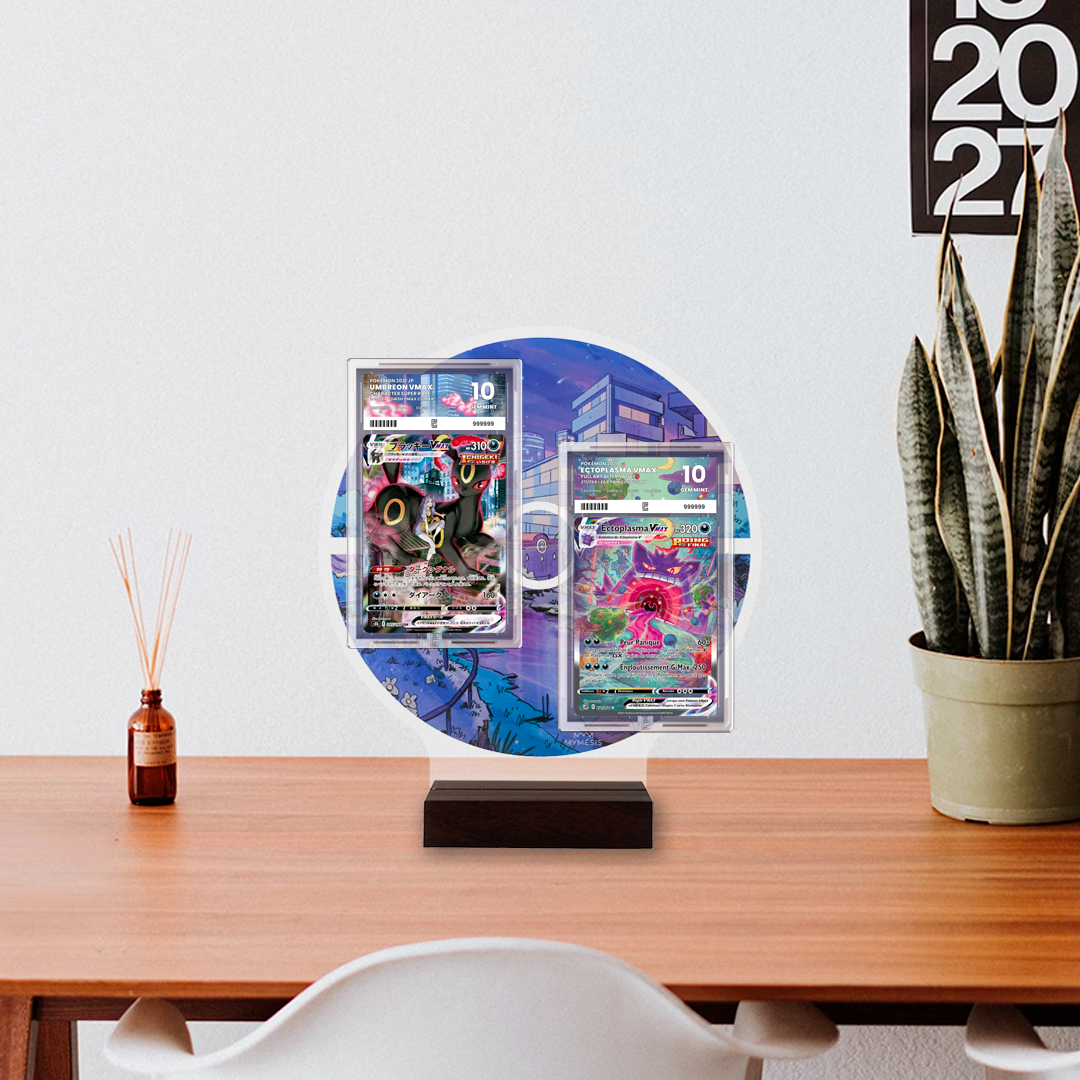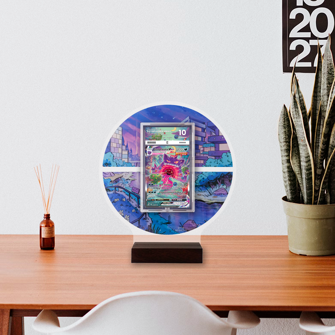 La version "Ville Nocturne", comme son nom l'indique, représente une ville issue de l'univers Pokémon. Cette illustration ira à ravir avec vos cartes dans les teintes violettes ou roses !